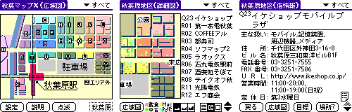 This new discovery reminded me of another vintage map of Akihabara that I had seen recently, only this time it was digital and available for platforms that were popular at the time: Palm OS (as a native app), Macintosh and Windows (as a FileMaker Pro interactive database).